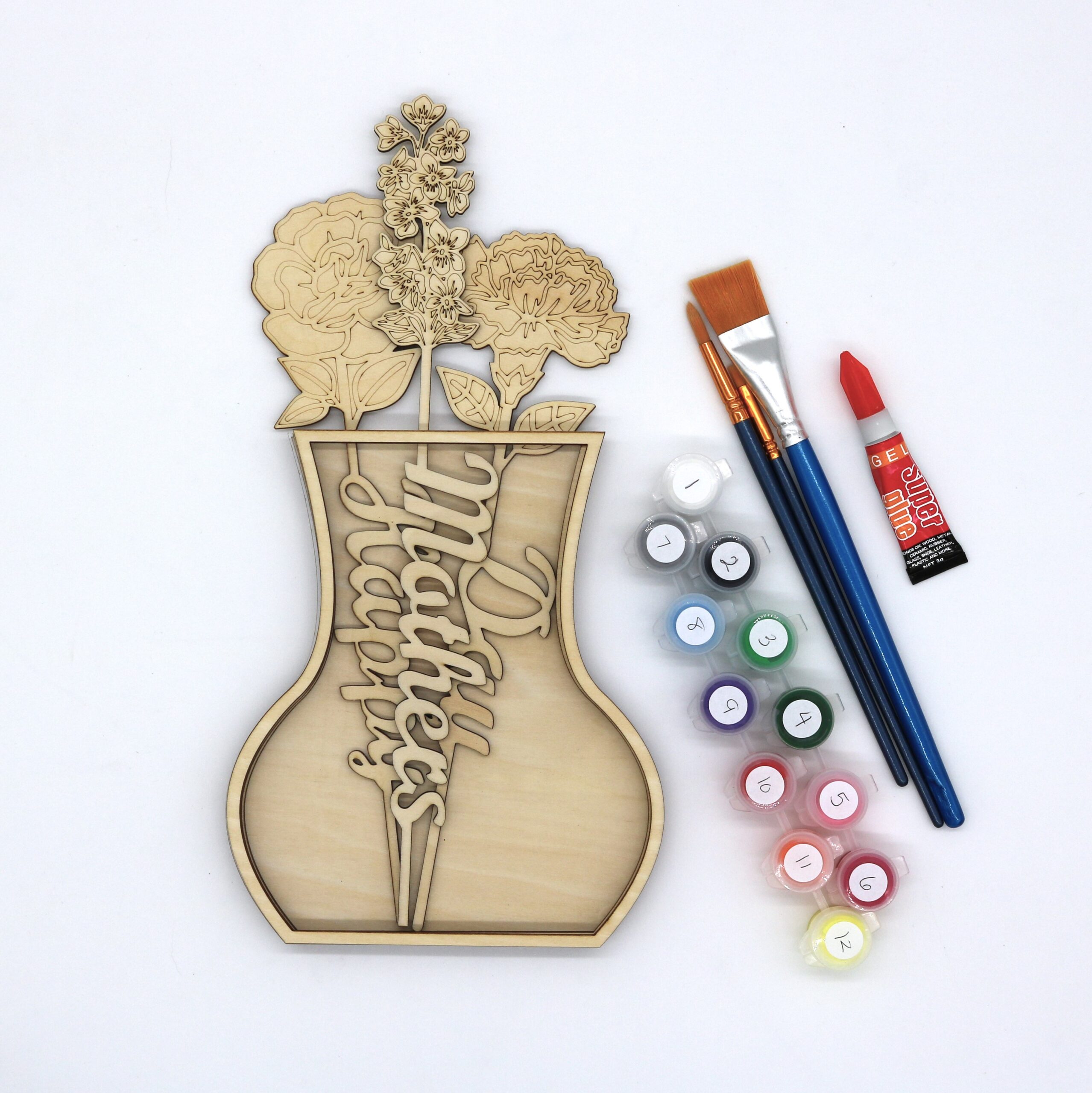 This four layered wood project of your Mother’s Day Bouquet includes: